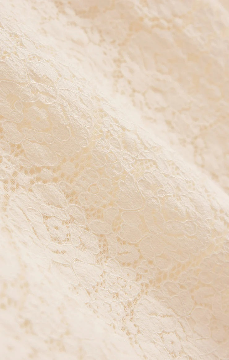 Long-sleeve fitted crew neck top in ivory stretch-floral lace. Pair with our Via Lace Midi Skirt to complete the look!