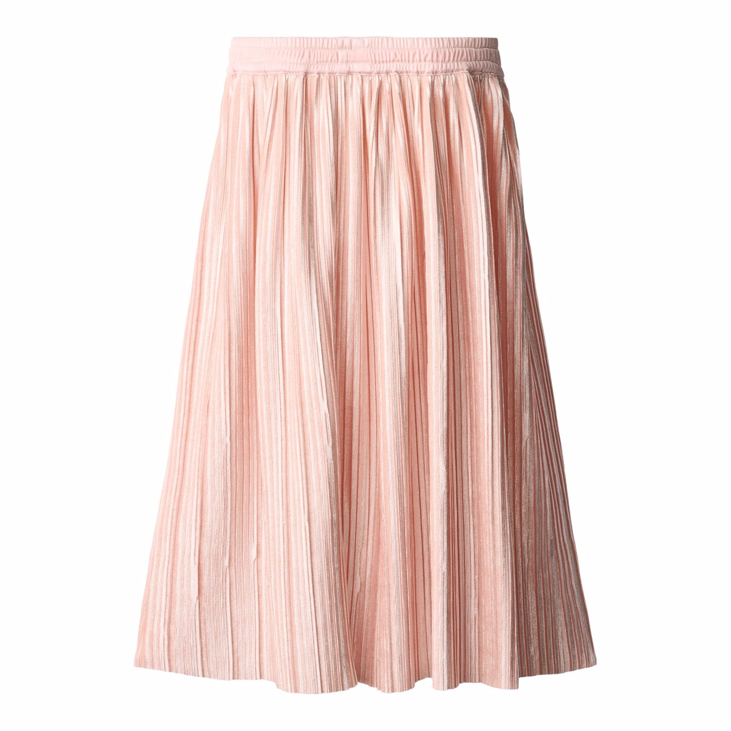 Pleated skirt made of soft rose velour. The skirt has elastic in the waist with a tie belt, allowing it to be worn high on the waist or on the hip. The skirt has a length to mid-shin and falls beautifully in the heavy velour.