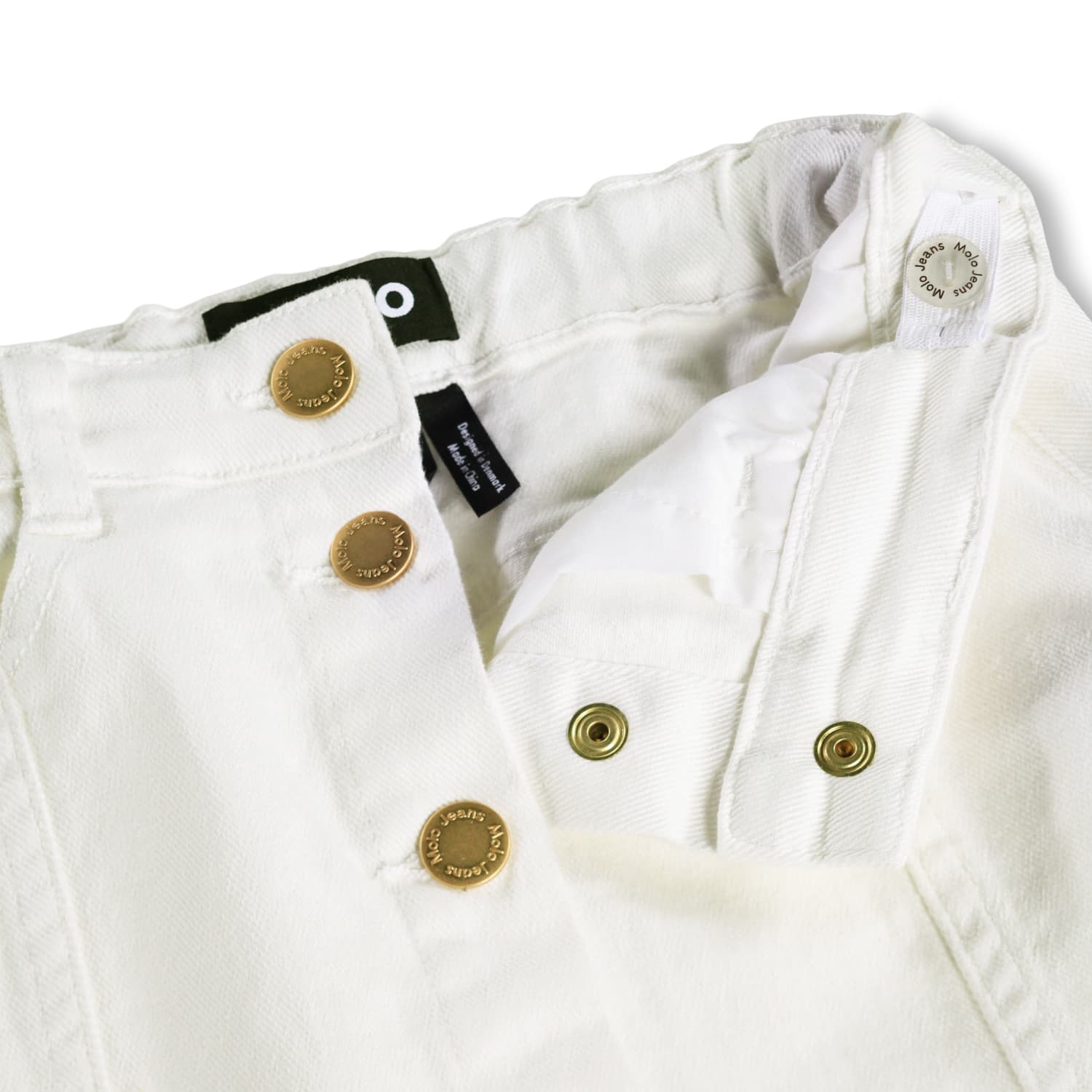 Baby pink denim skirt with gold-coloured press studs, front pockets, and an internal adjustable elastic, so the fit can be easily adjusted.