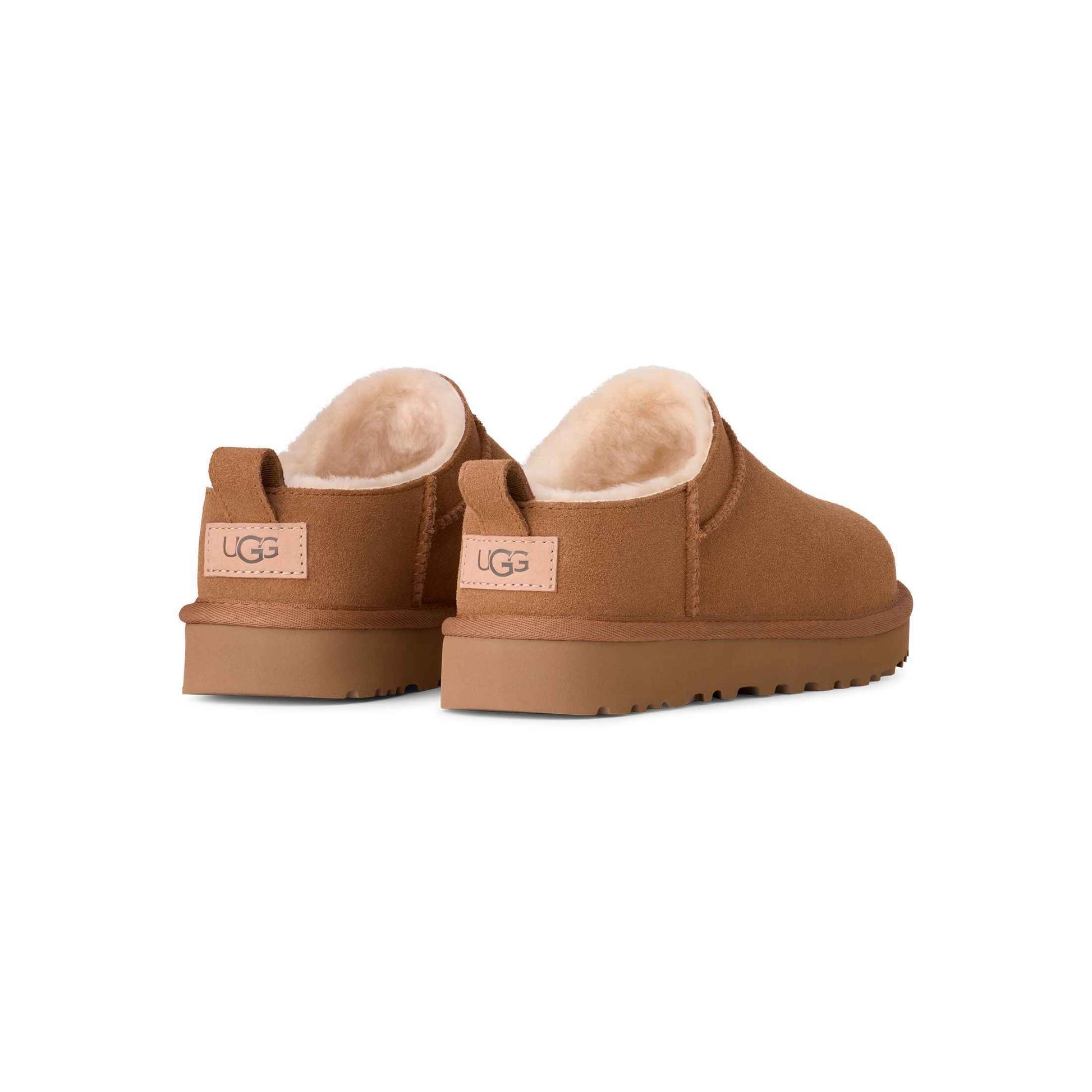 - Woven label with The UGG® Logo on insole, The UGG® Logo embossed leather heel label