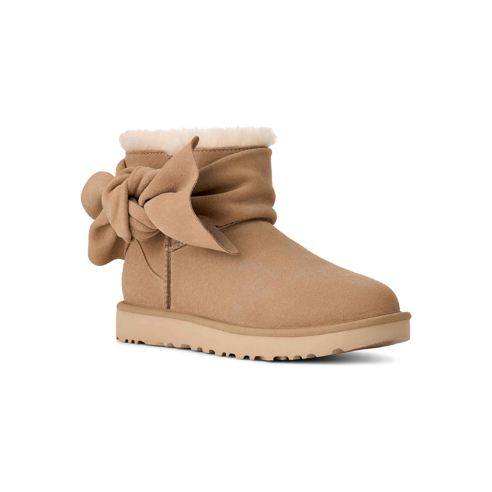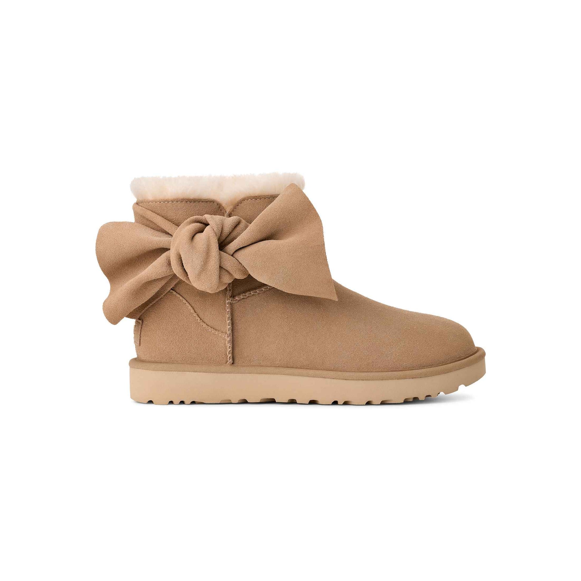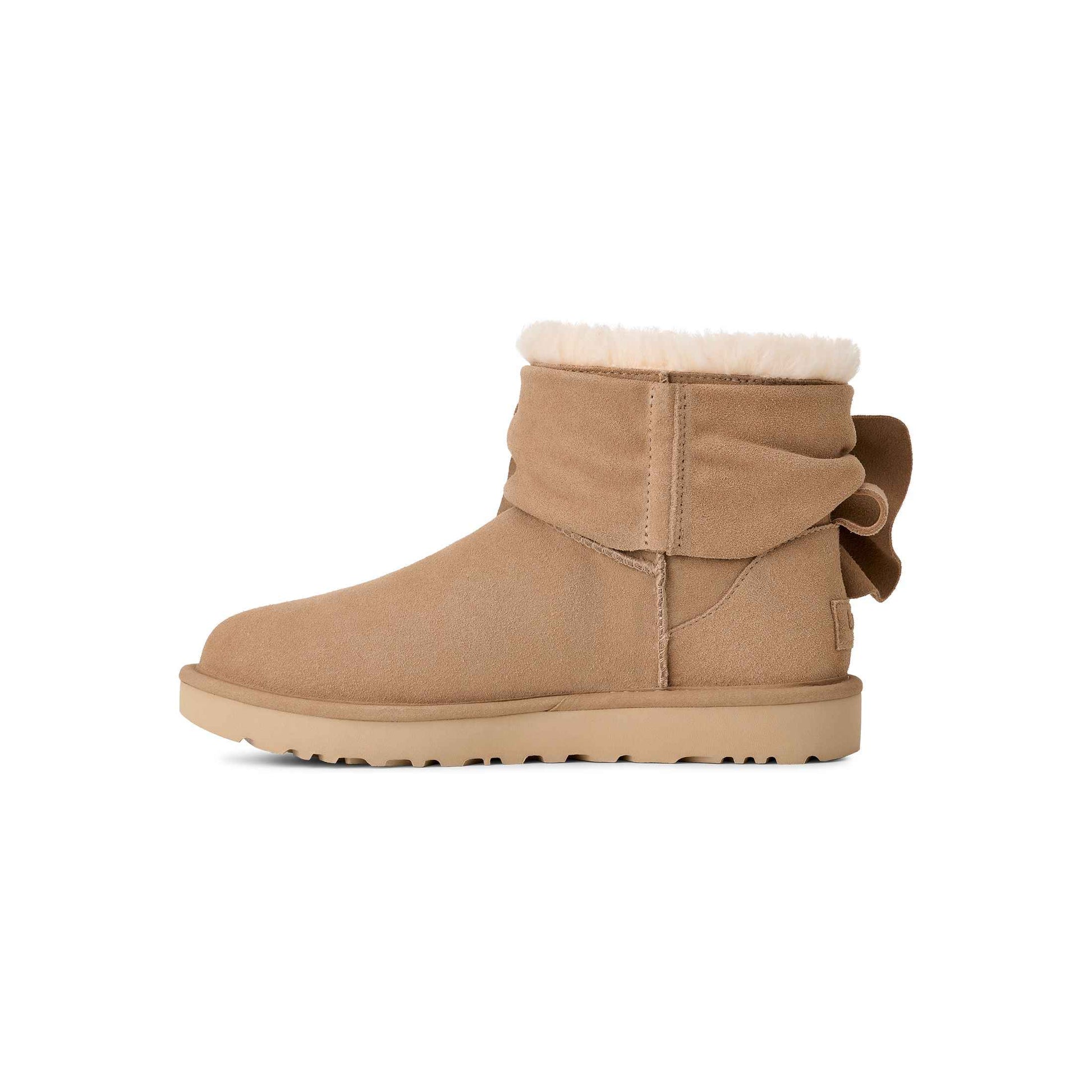 - The UGG® Logo, embossed suede heel label