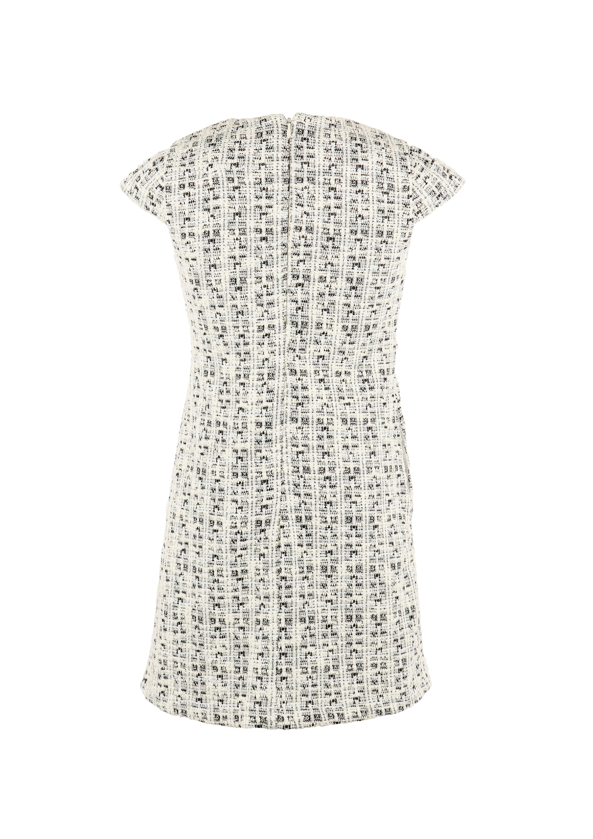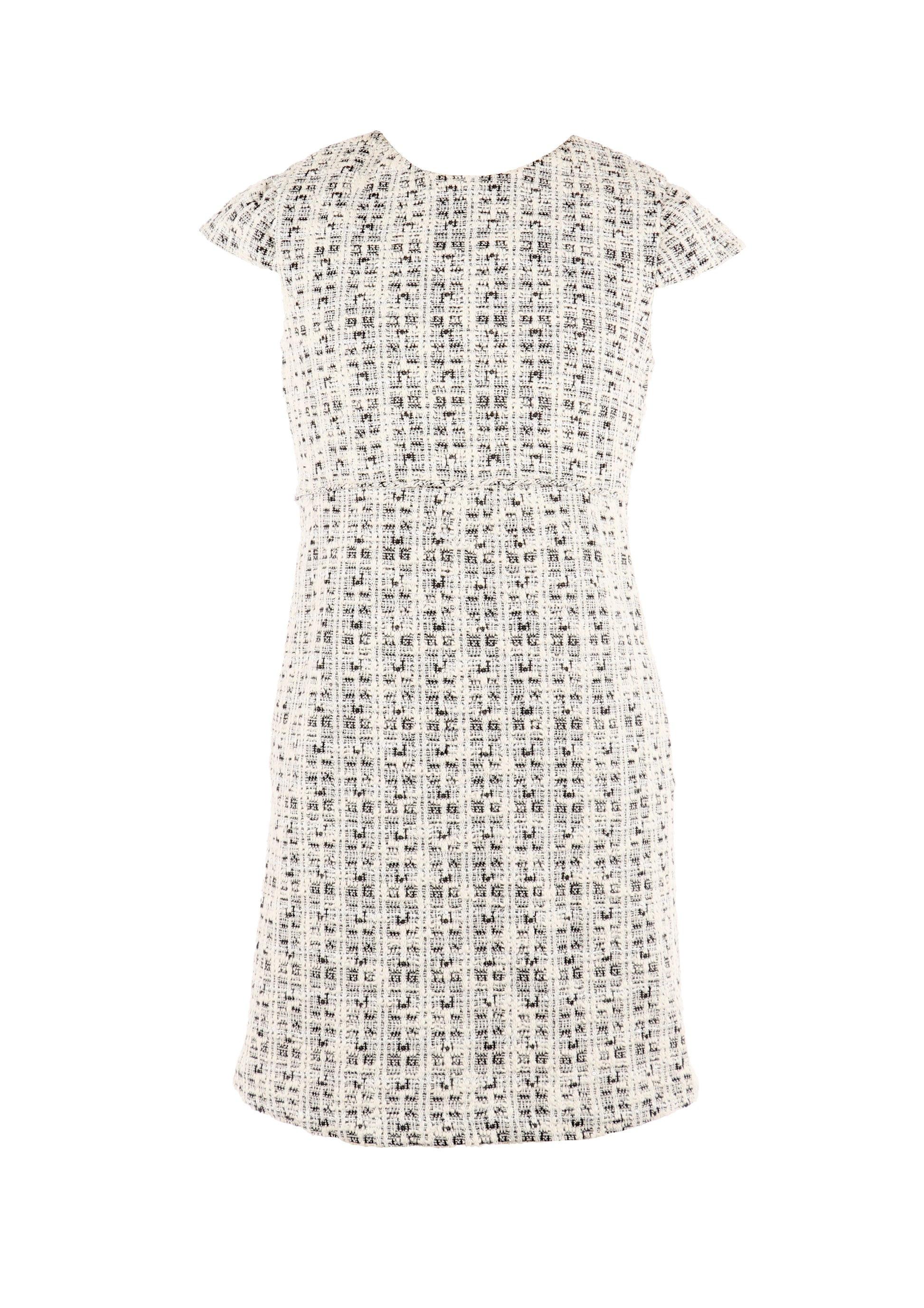 Black and white tweed shift dress with delicate sequin detail woven throughout. Lined. Has pockets!